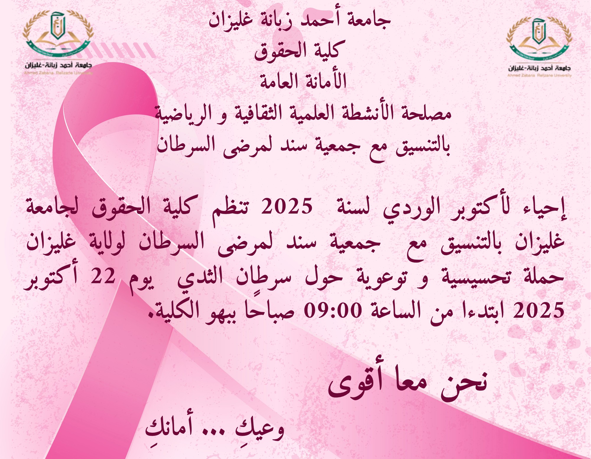 الرئيسية/رزنامة التظاهرات/حملة تحسيسية و توعوية حول سرطان الثدي حملة تحسيسية و توعوية حول سرطان الثدي اظهر المزيد